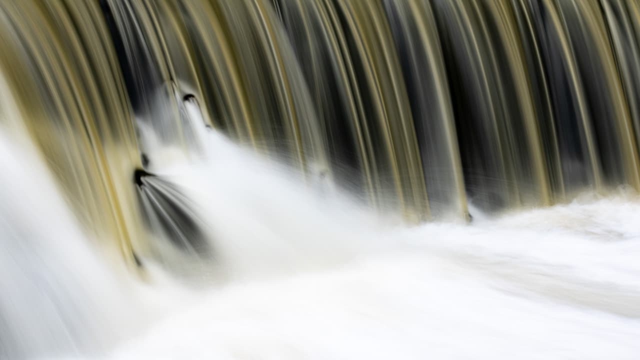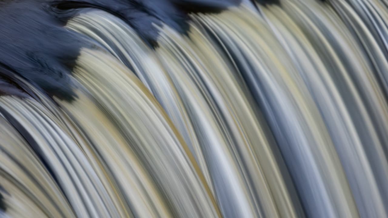 Smooth, silk-like strands of water falling in parallel—a quiet abstraction found within the rush.