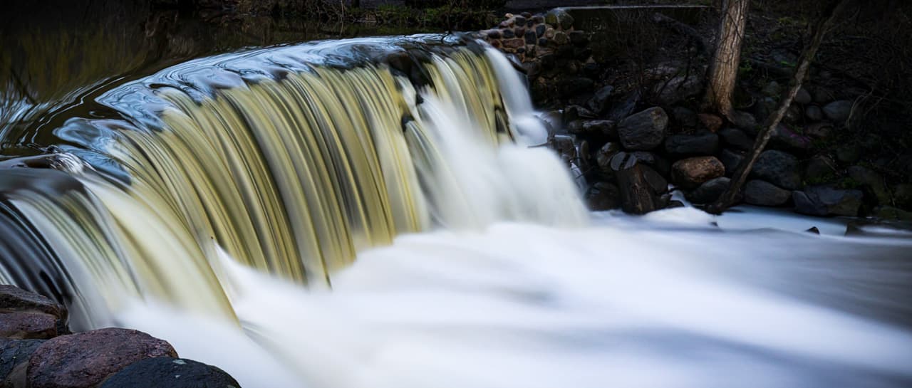I managed to get a few shots with the 70-200mm. I bumped the ISO to 1000 and opened up to f/4.5 just to get the shutter speed down to 1/4 second to see some splash. For the wider panoramas, I was able to get it down to 10 seconds. It started raining harder while I was down there, so I had to use the tripod as a staff just to maneuver back up the bank.